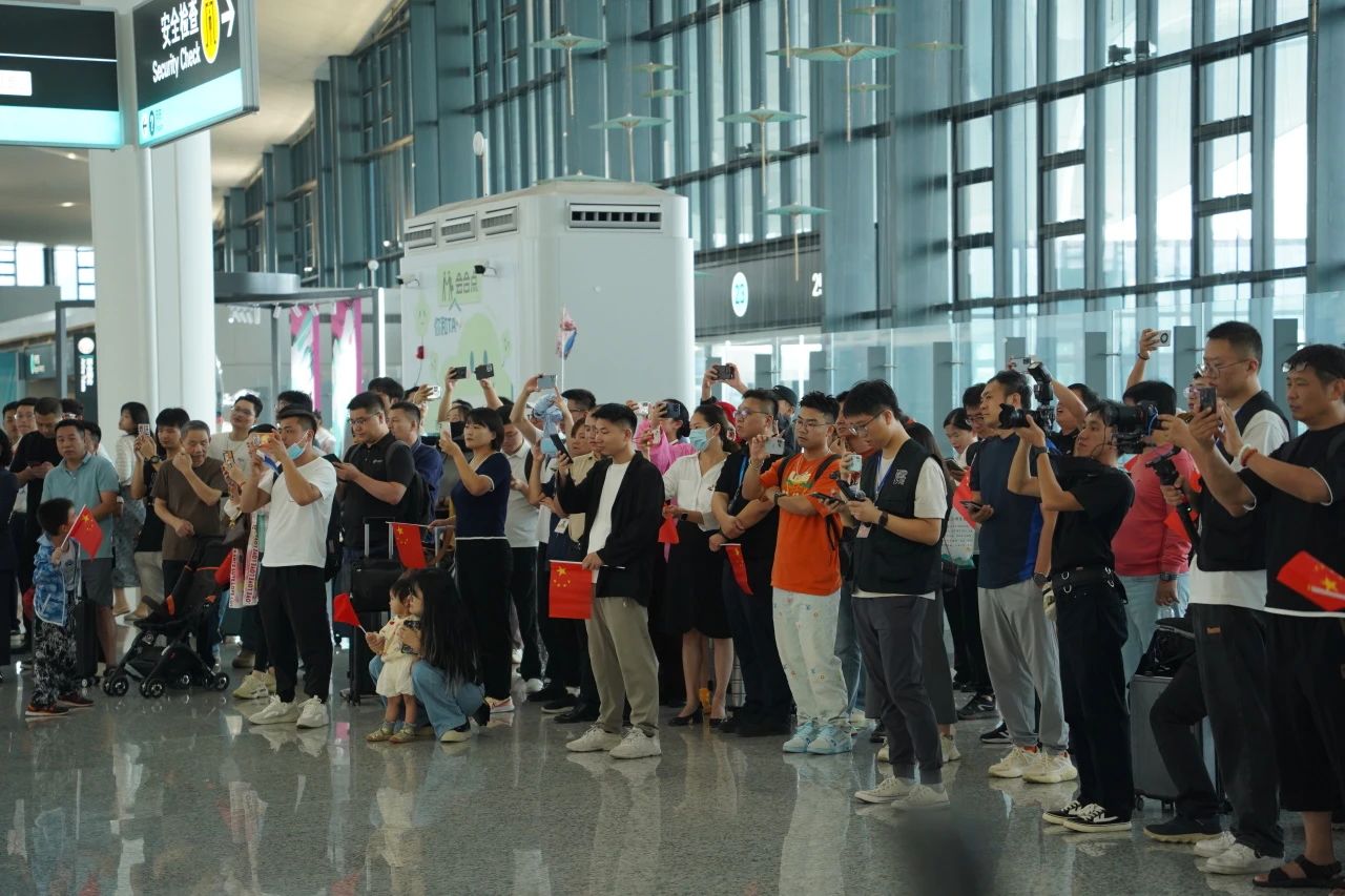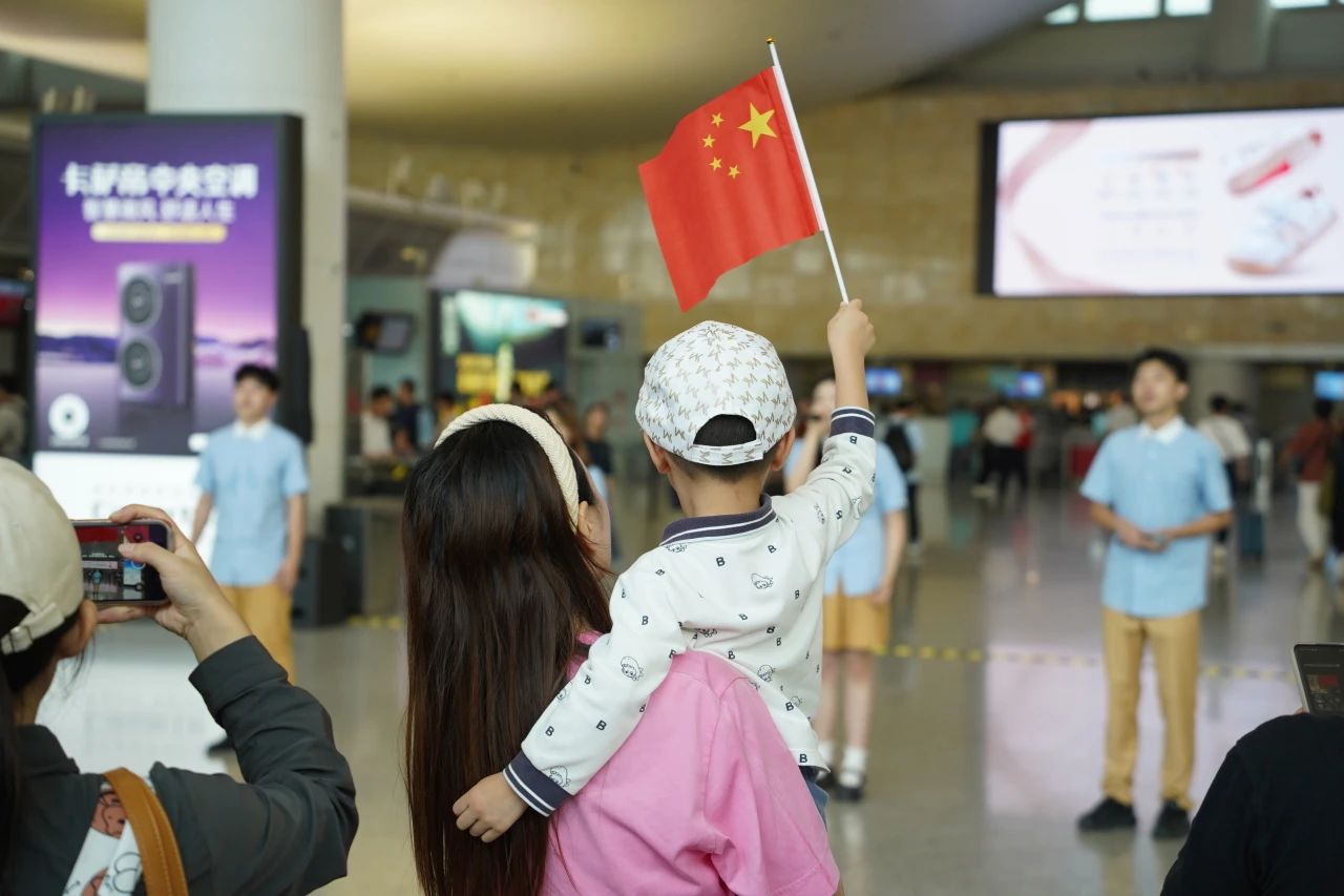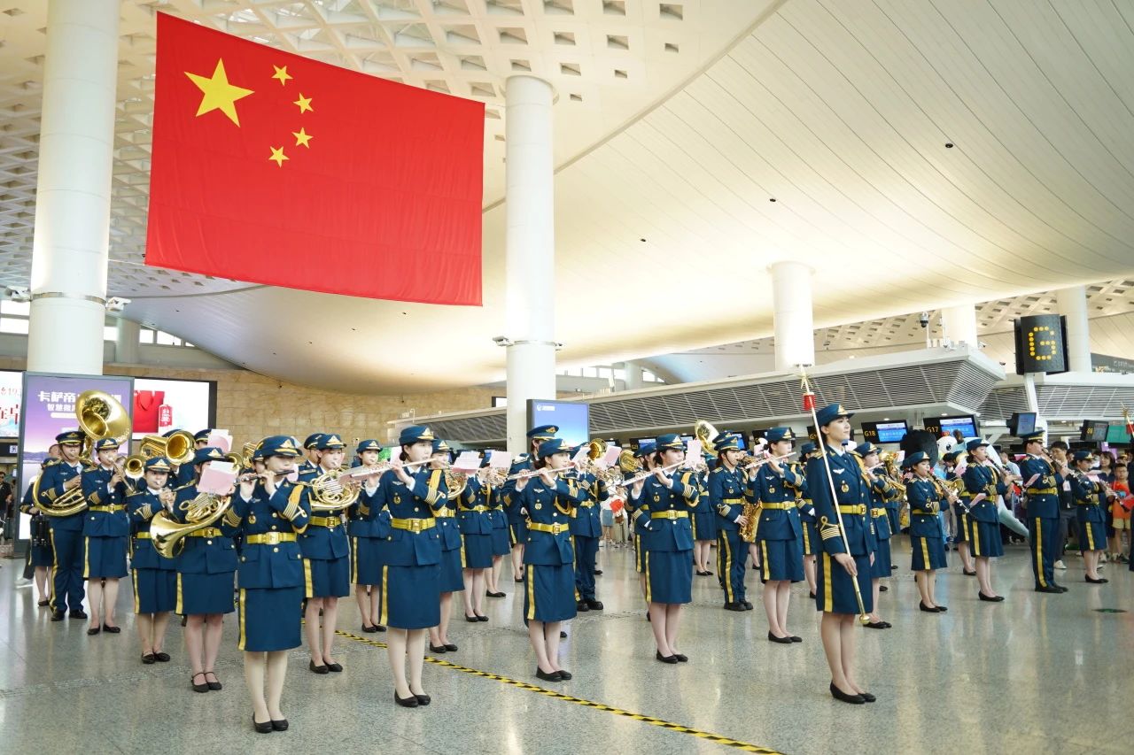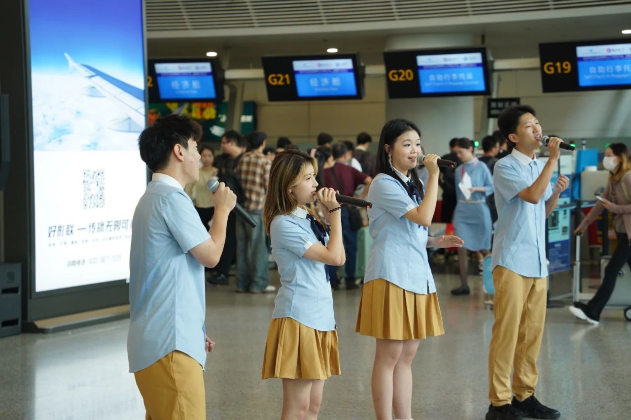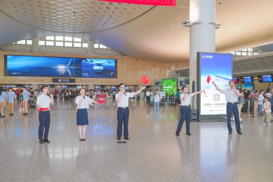 我愛你,中國!航站樓內歌聲嘹亮,歌唱祖國
