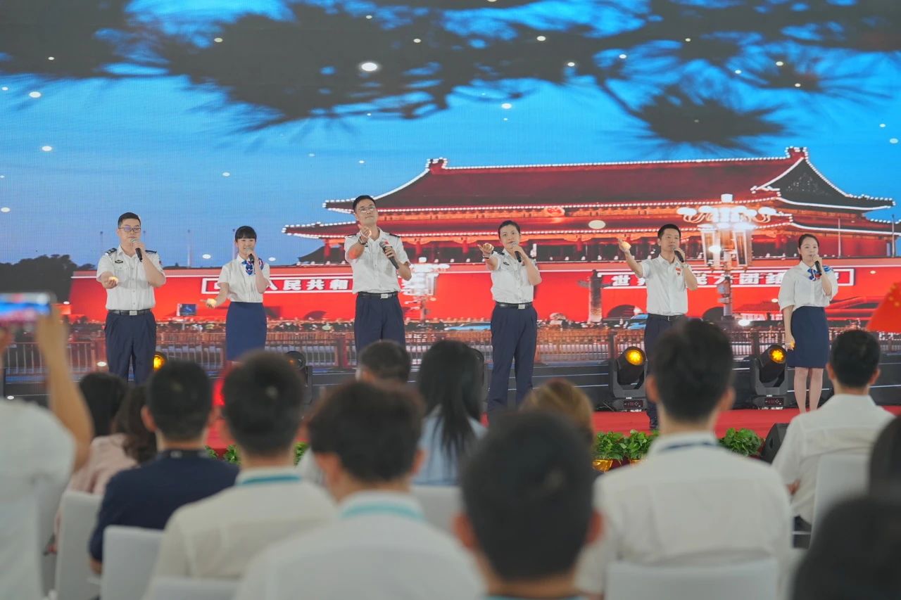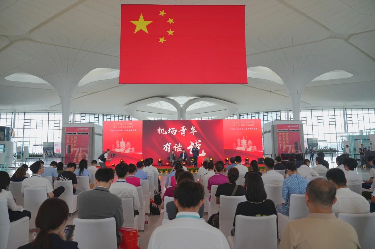在T4出發大廳中庭的舞臺上,“禮贊偉大祖國”歌詠活動熱烈展開。來自省機場集團和省交通集團的青年宣講員們,正用清朗悅耳、直抵人心的“青春之聲”告白祖國,讓人眼前一亮、心頭一暖。他們談青春感悟、話產業變革、學先輩楷模,從一個個小切口、小場景、小案例出發,娓娓道來、深入淺出,讓蓬勃青春與偉大時代交相輝映。