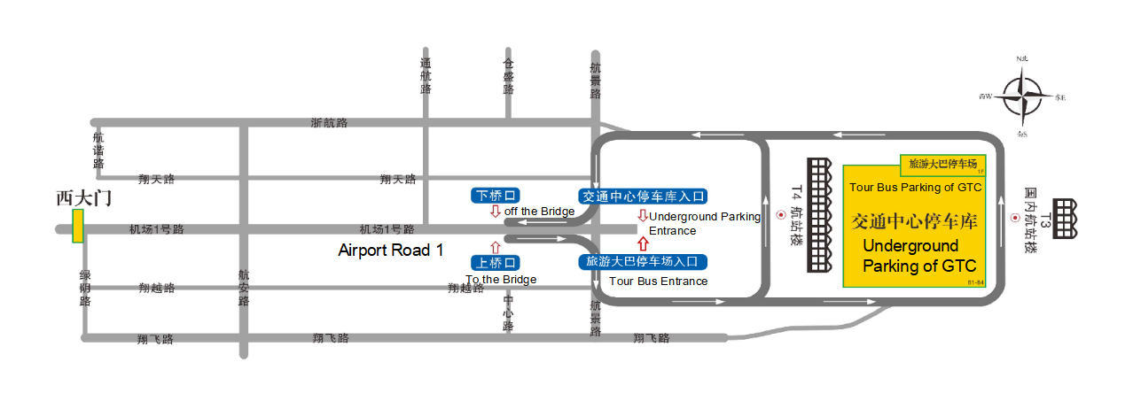 Underground Parking of GTC: This parking garage is located on the B1-B4 floors of the traffic center. You can drive on the left ground road of Airport Road 1 and go straight to enter.