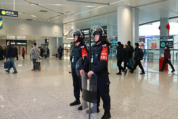 2月2日春運首日,杭州機場正式拉開春運保障序幕。為應對客流高峰,機場場區管理中心秩序管理室特別組建了一支由退伍軍人構成的“春運保障突擊隊”,在機場交通中心開展全天候、不間斷巡邏工作。
