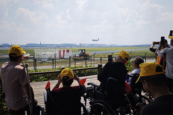 9月26日,在杭州機場公司黨群部、團委組織下,余杭區30余名殘疾人走進杭州機場。在飛行區、航站區團委志愿者的全程陪伴下,大家第一次體驗乘機流程,感受飛機起降的震撼,圓夢心中向往已久的“飛行夢”。